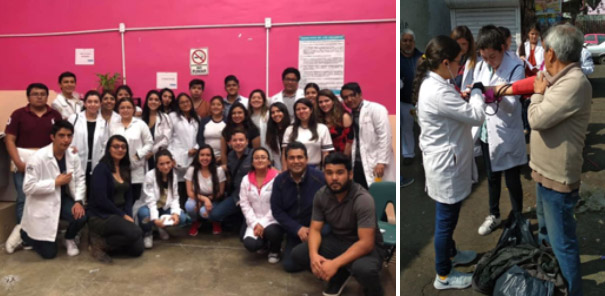 Recorrido en calle con la feria de atención médica con estudiantes de la facultad de Medicina, UNAM.