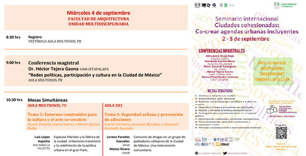 Participación en el seminario de la facultad de arquitectura Ciudades Cohesionadas donde se habló de la vida e intervención de quienes mejor conocen la ciudad, pues viven en sus calles.