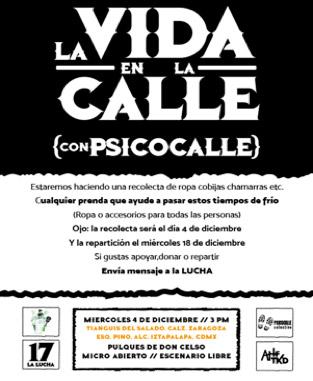 Colecta, convivio y repartición de ropa en buen estado, comida e información en la Candelaria y Plaza de la Soledad.